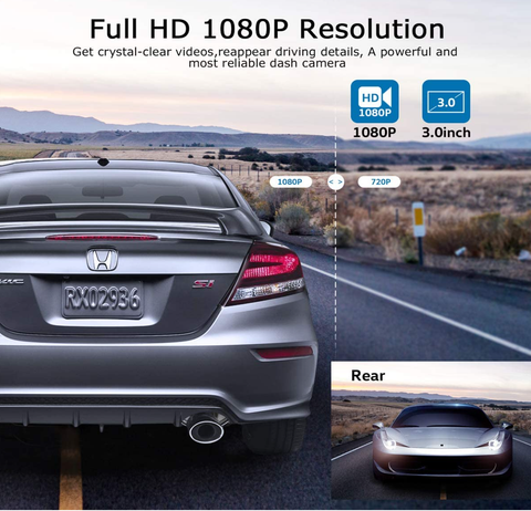 ORSKEY S800 Dash Cam 1080P Full HD Front and Rear Dual Camera 170° Wide Angle HDR Night Vision